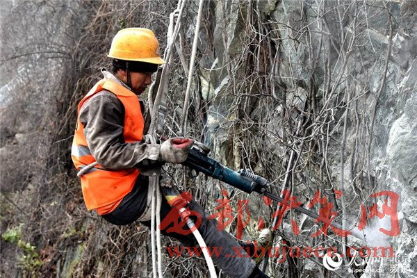 在重大地質(zhì)災(zāi)害隱患點(diǎn)治理現(xiàn)場(chǎng),記者發(fā)現(xiàn)了一群“大山里的蜘蛛人”。他們?cè)?0米高的懸崖上作業(yè),用鐵絲網(wǎng)將大山“網(wǎng)住”,防止懸崖上的石塊掉落,保證國(guó)道上來(lái)往車輛的行車安全。記者注意到,整個(gè)作業(yè)期間,他們都用一根安全繩系住身體,吊在懸崖邊。初冬的北京寒風(fēng)已經(jīng)有些刺骨,在山區(qū)更是比市區(qū)低了幾度,而這些“蜘蛛人”也沒(méi)有進(jìn)行特別的保暖工作。