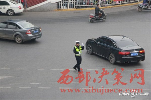 周日(20日)早高峰剛過,小寨十字上的交警正在示意由西向北行駛的車輛左轉。