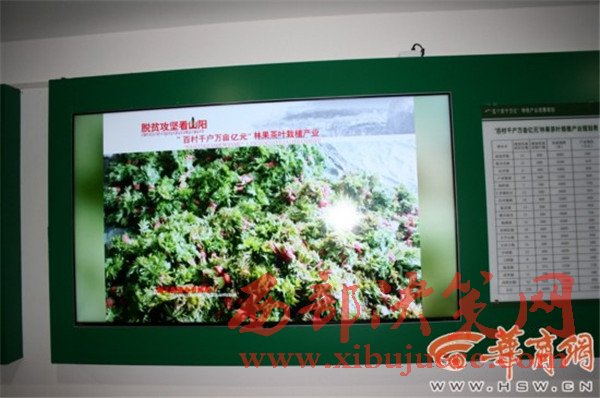 在山陽扶貧開發(fā)局辦公場所走廊,一側墻上安裝有6臺液晶電視看上去很顯眼,滾動播放著扶貧圖片和相關數(shù)據(jù)。