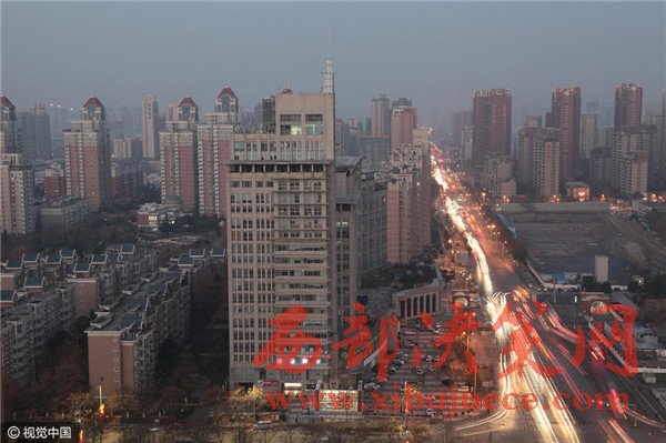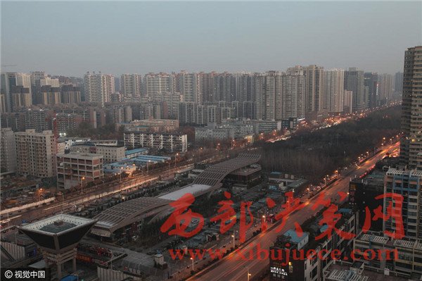 2016年12月22日,西安,在經(jīng)歷前日一場(chǎng)風(fēng)吹之后,困擾古城西安10余天的霧霾逐漸散去。加上昨天是二十四節(jié)氣中的冬至,也是一年當(dāng)中黑夜最長的一天,當(dāng)日一早,鳥瞰城市,雖然已是早7點(diǎn)半,但仍然是燈火闌珊。清晨城市車水馬龍,萬家燈火、迎來新的一天璀璨的美景,停課兩天的學(xué)生終于重返課堂。