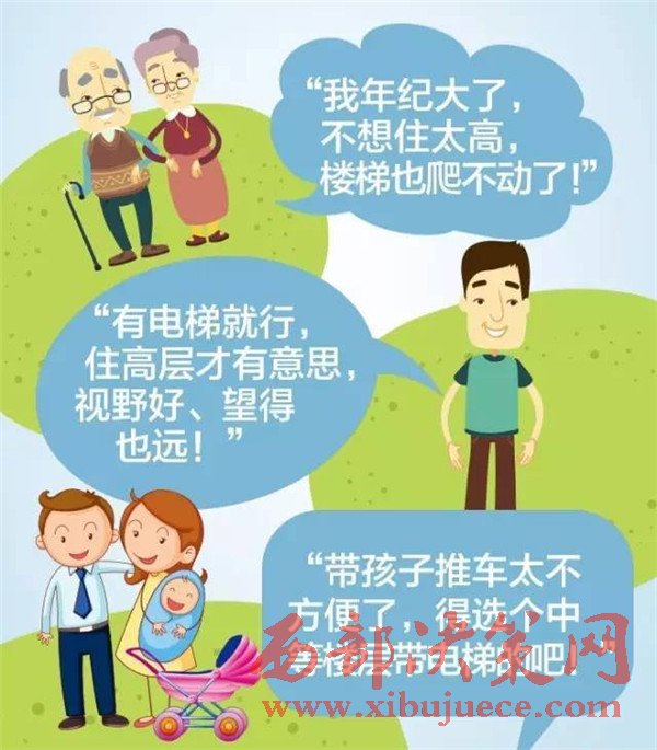弊:如果電梯出現(xiàn)故障,或者是電梯擁擠的時候,四層至六層可能對于老年人和小孩來說,上下樓會很不方便。