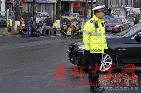 站在路口指揮疏導(dǎo)的交警碑林大隊(duì)文藝路中隊(duì)中隊(duì)長(zhǎng)馮侃說(shuō),受氣溫降低影響,清晨時(shí)分路面易結(jié)冰,過(guò)往車輛務(wù)必注意路況,尤其要保持車距,“同時(shí)也需要提醒行人和非機(jī)動(dòng)車,通過(guò)路口時(shí)務(wù)必觀察后通行,以免發(fā)生意外。”