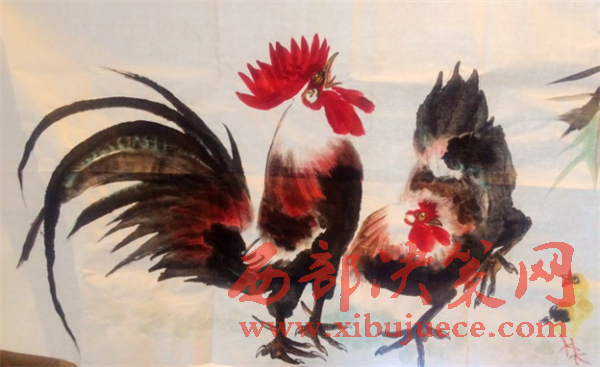 我畫的公雞被公雞鹐了:畫雞已經(jīng)成了他每天的必修課,2004年12月的一天,他下班回家吃過晚飯,到后院抱了一只公雞到屋里準(zhǔn)備觀察做畫,他把公雞放在地上,由于新環(huán)境公雞的頭上下左右窺視看看四周。突然,公雞先是跳到了床上,然后從床上跳到箱子上,從箱子上飛向掛在墻上以前畫的雄雞,鹐了畫上雄雞的脖子。它把我畫的公雞誤當(dāng)成同類了,它向同類發(fā)起了攻擊,卻沒有發(fā)現(xiàn)那是我畫的畫。看來我畫的雞同類已經(jīng)無法分辨出來了,我要發(fā)誓必須努力的繼續(xù)畫下去。他非常激動的介紹到。