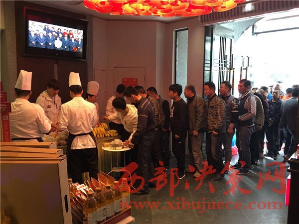 在現(xiàn)場(chǎng)記者看到,旺順閣魚頭泡餅門口工作人員指引的士司機(jī)們到指定車位,兩邊迎賓工作人員熱情接待每位到來(lái)的賓客。陸續(xù)到達(dá)的出租車已有近百輛,有序的一字排開,個(gè)個(gè)的哥臉上洋溢著燦爛的笑容,暢談寒暄,快樂(lè)的等待著。中午12時(shí),旺順閣魚頭泡餅西安財(cái)富中心店總經(jīng)理呂貴朋女士宣布活動(dòng)正式開始。