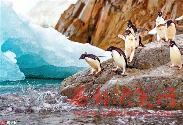 南冰洋企鵝排隊(duì)跳水前畫面溫馨有趣