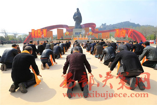 3月31日,司馬遷后裔在陜西省韓城市司馬遷祭祀廣場(chǎng)叩首祭拜司馬遷。