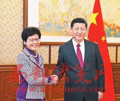 國家主席習(xí)近平11日下午在中南海瀛臺(tái)會(huì)見了新當(dāng)選并獲中央政府任命的香港特別行政區(qū)第五任行政長官林鄭月娥。