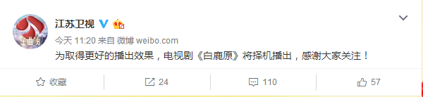很多守在電視機(jī)前準(zhǔn)備看《白鹿原》的觀眾都撲空了,江蘇衛(wèi)視和安徽衛(wèi)視原計(jì)劃播放第2集的時(shí)間卻各自播放了其他內(nèi)容,但兩方都未對《白鹿原》停播作出解釋。就在今日,兩家衛(wèi)視都官方發(fā)表聲明表示,“為取得更好的播出效果,電視劇《白鹿原》將擇機(jī)播出,感謝大家關(guān)注!”