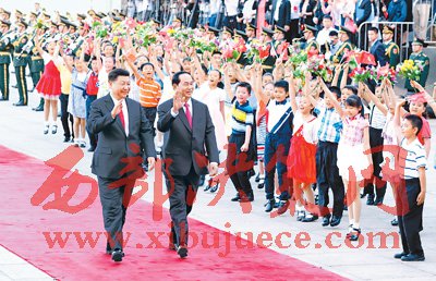 國(guó)家主席習(xí)近平11日在人民大會(huì)堂同越南國(guó)家主席陳大光舉行會(huì)談。兩國(guó)元首一致同意保持雙邊關(guān)系積極發(fā)展勢(shì)頭,推進(jìn)各領(lǐng)域合作,推動(dòng)中越全面戰(zhàn)略合作伙伴關(guān)系邁上新臺(tái)階,為兩國(guó)和兩國(guó)人民帶來(lái)更多實(shí)實(shí)在在利益。
