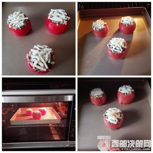 7、到時取出烤盤,西紅柿裝盤,撒少許的干蔥即可。