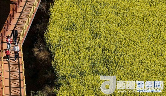 游人在云南省羅平縣觀賞盛開的油菜花(2月28日攝)。新華社記者 藺以光 攝