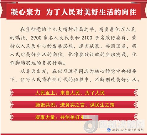 在貫徹黨的十九大精神開局之年,肩負(fù)著億萬(wàn)人民的囑托,2900多名人大代表和2100多名政協(xié)委員,秉持以人民為中心的發(fā)展思想,建言獻(xiàn)策、共商國(guó)是,將人民對(duì)美好生活的向往,化作參政議政的生動(dòng)實(shí)踐,化作腳踏實(shí)地的務(wù)實(shí)行動(dòng)。