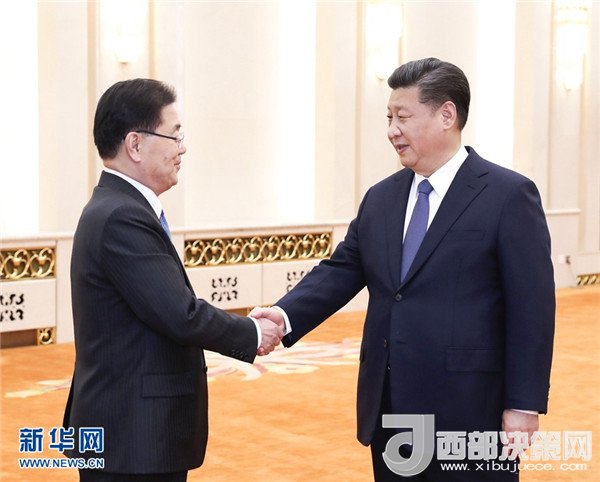 3月12日,國(guó)家主席習(xí)近平在北京人民大會(huì)堂會(huì)見(jiàn)韓國(guó)總統(tǒng)特使、國(guó)家安保室長(zhǎng)鄭義溶。 新華社記者 龐興雷 攝