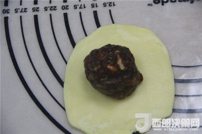 12.把油皮球用掌心均勻的向四周搟開(kāi)成皮。