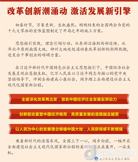 “我們要以更大的力度、更實(shí)的措施全面深化改革、擴(kuò)大對(duì)外開放,貫徹新發(fā)展理念,推動(dòng)經(jīng)濟(jì)高質(zhì)量發(fā)展,建設(shè)現(xiàn)代化經(jīng)濟(jì)體系,不斷增強(qiáng)我國(guó)經(jīng)濟(jì)實(shí)力、科技實(shí)力、綜合國(guó)力,讓社會(huì)主義市場(chǎng)經(jīng)濟(jì)的活力更加充分地展示出來(lái)。”習(xí)近平總書記在十三屆全國(guó)人大一次會(huì)議上的重要講話,再次發(fā)出了全面深化改革的號(hào)召。