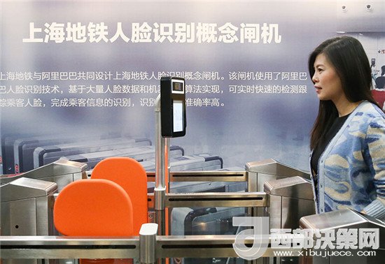 在上海申通地鐵集團有限公司,工作人員在現(xiàn)場體驗刷臉進站技術(shù)(2017年12月5日攝)。新華社記者 丁汀 攝