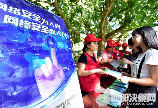 河北省廊坊市安次區(qū)網(wǎng)信辦工作人員和志愿者向?qū)W生們發(fā)放網(wǎng)絡(luò)安全宣傳折頁,倡導(dǎo)廣大師生提高網(wǎng)絡(luò)安全意識,共同維護網(wǎng)絡(luò)社會秩序(2017年9月19日攝)。新華社記者 王曉 攝