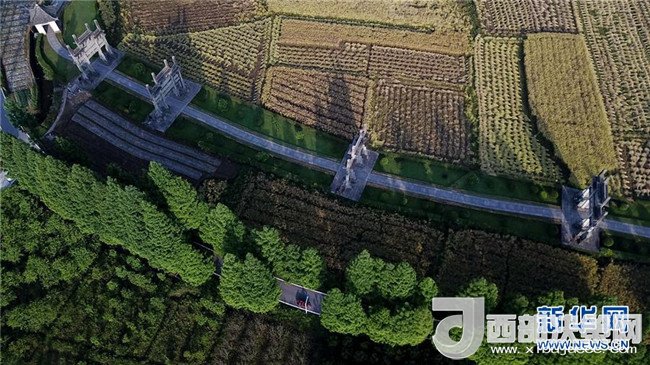 這是5月10日無人機拍攝的安徽歙縣棠樾古村的牌坊群。新華社記者張端 攝