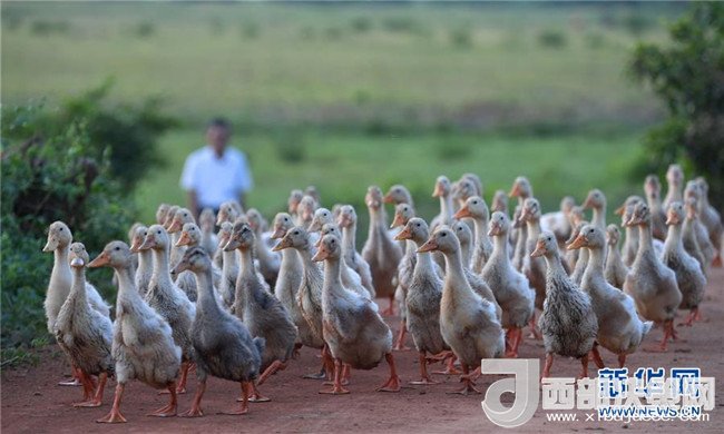 海口市瓊山區(qū)曲溪濕地,當(dāng)?shù)卮迕褚揽筐B(yǎng)鴨脫貧致富(5月30日攝)。