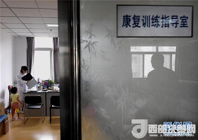 5月29日,笑笑戴著假肢在康復(fù)訓(xùn)練指導(dǎo)室里。