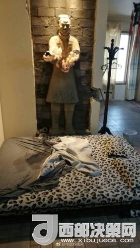 他告訴記者,“房子并不是我們裝修的,是原來房東做的”。“他是一個老西安人。從2008年就買下這處房子,因為他非常喜歡兵馬俑,就在裝修中加了很多兵馬俑元素進(jìn)去。”
