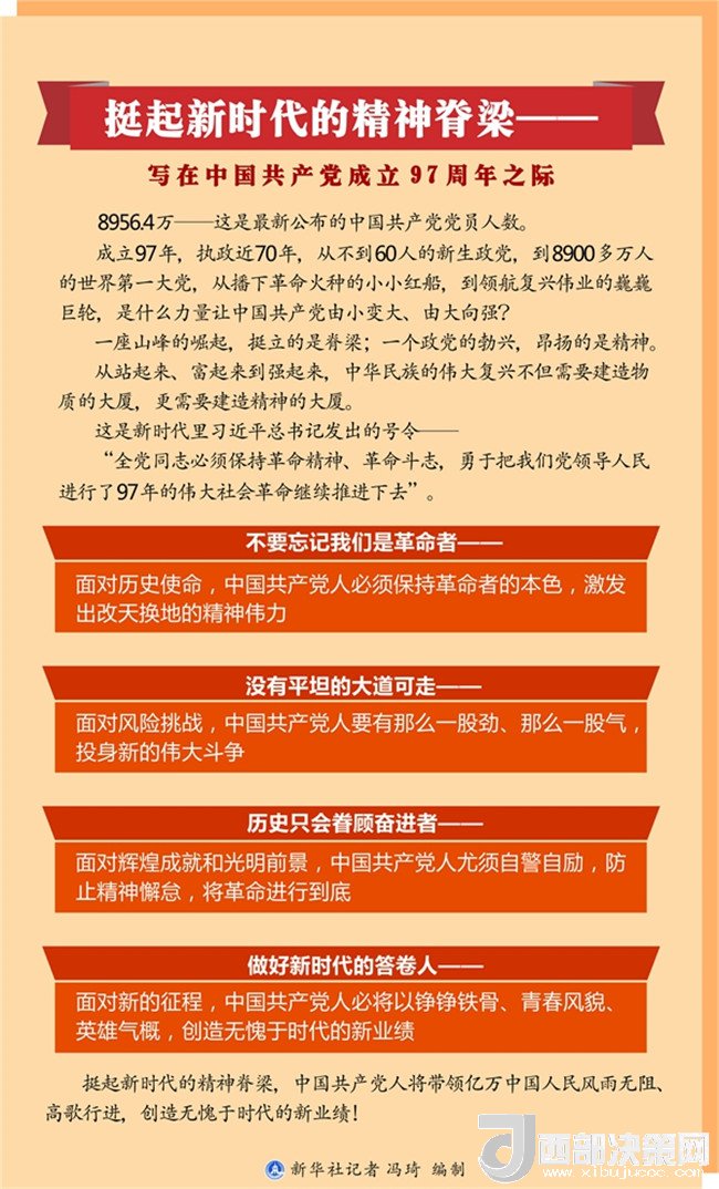挺起新時代的精神脊梁,中國共產(chǎn)黨人將帶領(lǐng)億萬中國人民風(fēng)雨無阻、高歌行進(jìn),創(chuàng)造無愧于時代的新業(yè)績!(記者:趙承、詹勇、張曉松、謝良、周文林、陳煒偉、朱基釵、吳晶、姜瀟、王卓倫、榮啟涵)