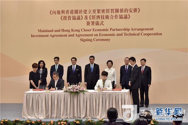 2017年6月28日在香港特區(qū)政府總部拍攝的《內(nèi)地與香港關(guān)于建立更緊密經(jīng)貿(mào)關(guān)系的安排》(CEPA)下的《投資協(xié)議》和《經(jīng)濟技術(shù)合作協(xié)議》簽約儀式現(xiàn)場。 新華社發(fā)(王璽攝)