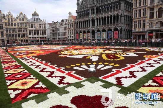 8月16日,由50多萬(wàn)朵秋海棠鋪就的鮮花地毯亮相比利時(shí)布魯塞爾大廣場(chǎng)。