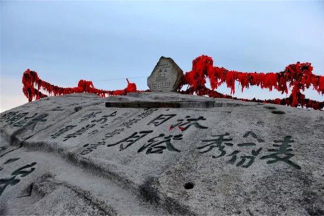 西峰海拔2082.6米,華山主峰之一,因位置居西得名。又因峰巔有巨石形狀好似蓮花瓣,古代文人多稱其為蓮花峰、芙蓉峰。袁宏道在他的《華山》中記述:“石葉上覆而橫裂”;徐霞客《游太華山日記》中也記述:“峰上石聳起,有石片覆其上,如荷花。”李白詩中有“石作蓮花云作臺”句,也當(dāng)指此石。