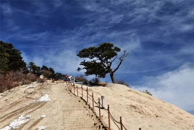 魏晉南北朝時(shí),還沒有通向華山峰頂?shù)牡缆?。直到唐朝,隨著道教興盛,道徒開始居山建觀逐漸在北坡沿溪谷而上開鑿了一條險(xiǎn)道,形成了"自古華山一條路"。