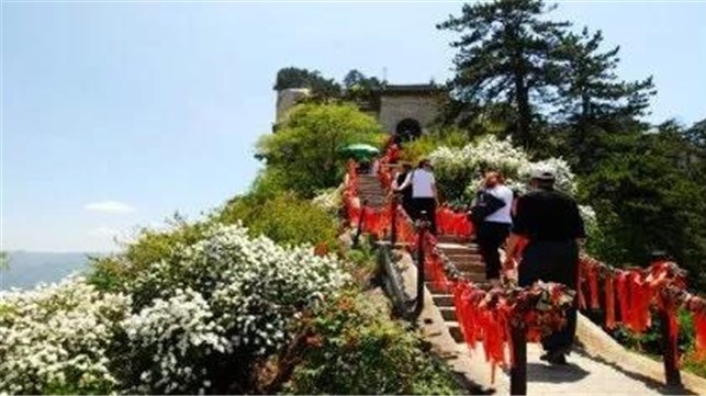 峰上景觀頗多,有影響的如真武殿、焦公石室、長春石室、玉女窗、仙油貢、神土崖、倚云亭、老君掛犁處、鐵牛臺、白云仙境石牌坊等,且各景點(diǎn)均伴有美麗的神話傳說。