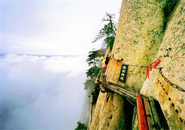 長空棧道位于南天門外,是華山著名險(xiǎn)道之首。棧道分三段: