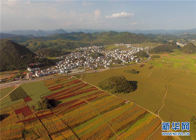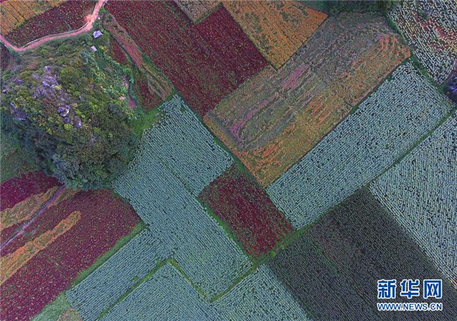 云南羅平的七彩花田(9月5日無(wú)人機(jī)拍攝)。 新華社記者楊宗友攝