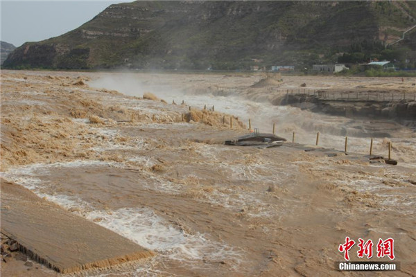 近日,黃河壺口瀑布水量大增,湍急的水流攜帶大量的泥沙奔涌而下,主瀑布幾乎沒有落差,出現(xiàn)“水岸齊平”的景象。 阿琳娜 攝