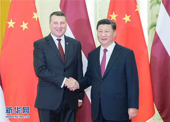 國(guó)家主席習(xí)近平18日在人民大會(huì)堂會(huì)見來華出席夏季達(dá)沃斯論壇的拉脫維亞總統(tǒng)韋約尼斯。