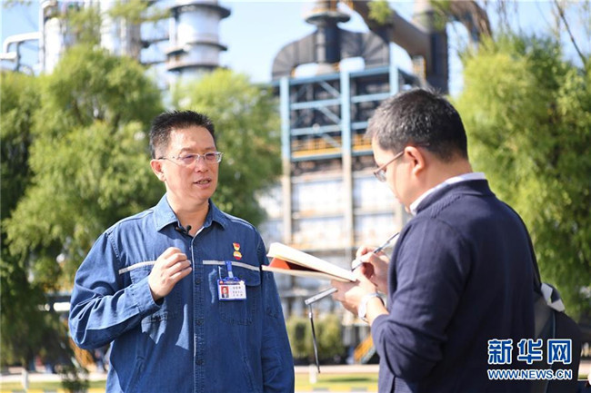 中國(guó)石油遼陽(yáng)石化公司總經(jīng)理、黨委書記白雪峰向記者介紹情況(9月27日攝)。新華社發(fā)(龍雷攝)
