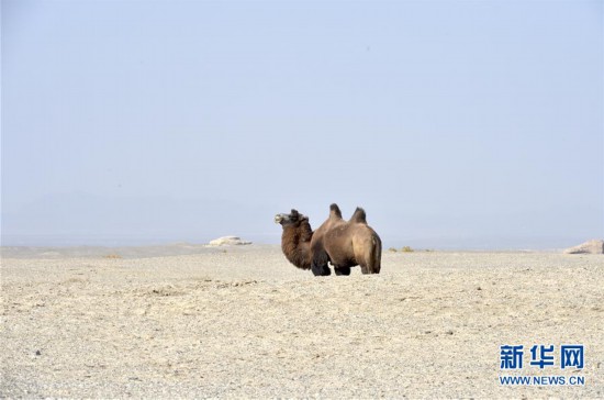 這是10月16日在敦煌西湖國(guó)家級(jí)自然保護(hù)區(qū)拍攝的野駱駝。 新華社記者 李笑 攝