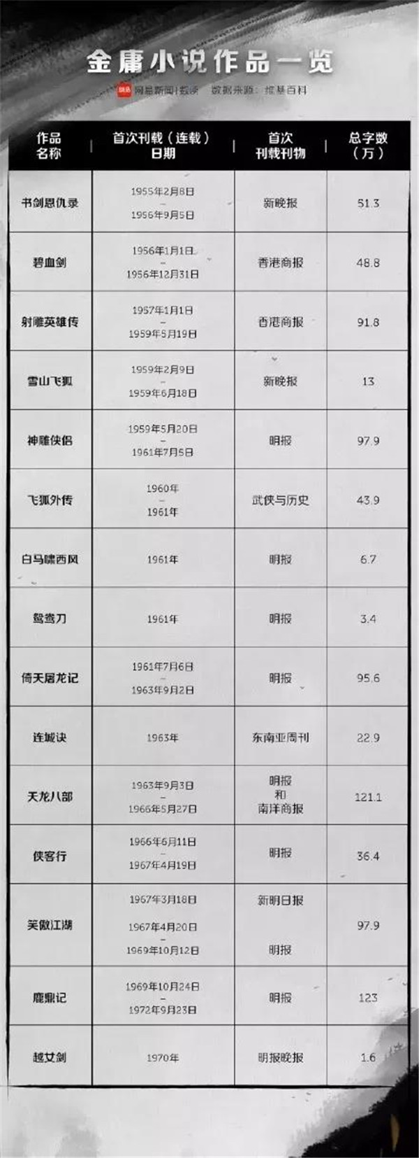 作為一直“被去世”的名人,金庸老先生自己都會(huì)調(diào)侃說到“我都死了20多回了”。而這位武俠泰斗,這次是真的離開了。就像他自己曾說過的那樣“大鬧一場(chǎng),悄然離去”。