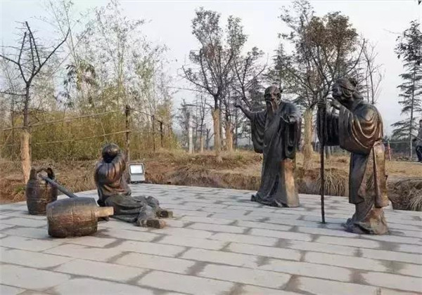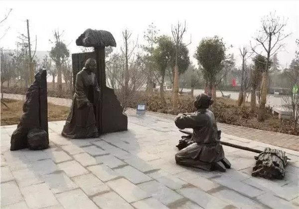 董永,相傳為東漢時(shí)期千乘人,年少喪母,因避兵亂遷居安陸。其后父親亡故,董永賣身至一富家為奴,換取喪葬費(fèi)用。上工路上,于槐蔭下遇一女子,自言無(wú)家可歸,二人結(jié)為夫婦。女子以一月時(shí)間織成三百匹錦緞,為董永抵債贖身,返家途中,行至槐蔭,女子告訴董永:自己是天帝之女,奉命幫助董永還債。言畢凌空而去。因此,槐蔭改名為孝感。