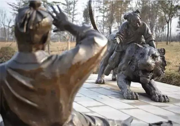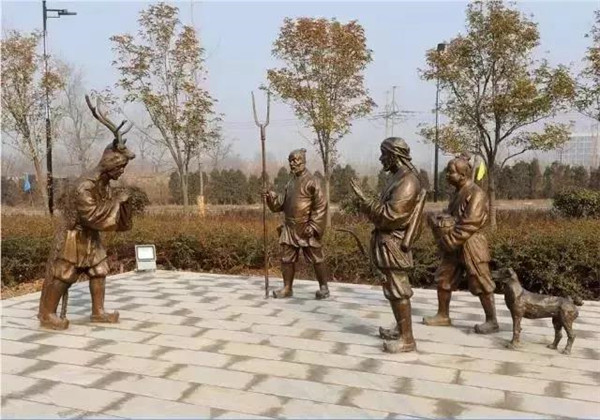 春秋時(shí)期的郯子,父母年老,患眼疾,需飲鹿乳療治。他便披鹿皮進(jìn)入深山,鉆進(jìn)鹿群中,擠取鹿乳,供奉雙親。一次取乳時(shí),看見(jiàn)獵人正要射殺一只麂鹿,郯子急忙掀起鹿皮現(xiàn)身出走,將擠取鹿乳為雙親醫(yī)病的實(shí)情告知獵人,獵人敬他孝順,以鹿乳相贈(zèng),護(hù)送他出山。