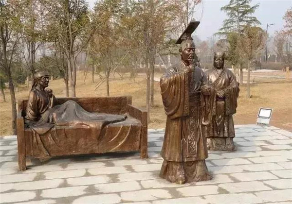 漢文帝劉恒,漢高祖第三子,為薄太后所生。高后八年(前180)即帝位。他以仁孝之名,聞?dòng)谔煜拢谭钅赣H從不懈怠。母親臥病三年,他常常目不交睫,衣不解帶;母親所服的湯藥,他親口嘗過(guò)后才放心讓母親服用。他在位24年,重德治,興禮儀,注意發(fā)展農(nóng)業(yè),使西漢社會(huì)穩(wěn)定,人丁興旺,經(jīng)濟(jì)得到恢復(fù)和發(fā)展,他與漢景帝的統(tǒng)治時(shí)期被譽(yù)為“文景之治”。