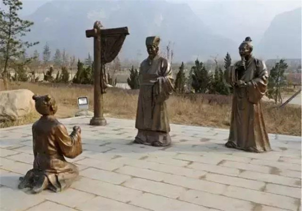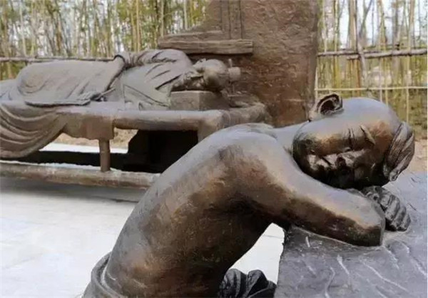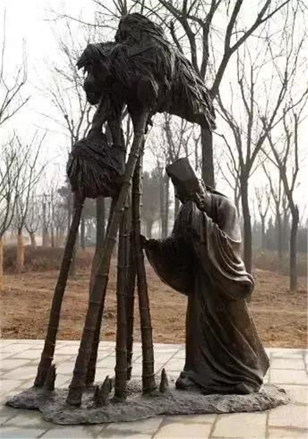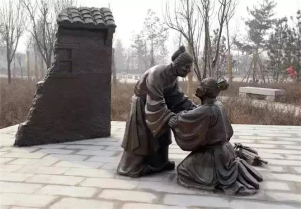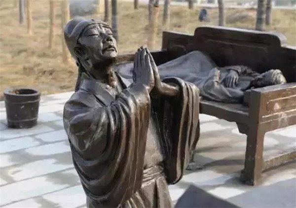 丁蘭,相傳為東漢時(shí)期河內(nèi)人,幼年時(shí)父母雙亡,他經(jīng)常思念父母的養(yǎng)育之恩,于是用木頭刻成雙親的雕像,事之如生,凡事均和木像商議,每日三餐敬過(guò)雙親后自己方才食用,出門前一定稟告,回家后一定面見(jiàn),從不懈怠。久之,其妻對(duì)木像便不太恭敬了,竟好奇地用針刺木像的手指,而木像的手指居然有血流出。丁蘭回家見(jiàn)木像眼中垂淚,問(wèn)知實(shí)情,遂將妻子休棄。