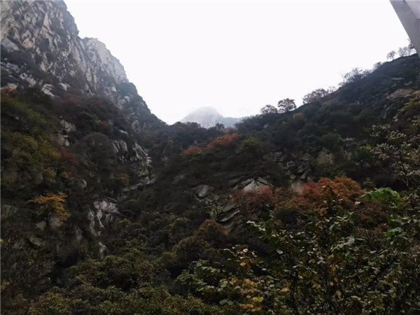 山路上,峻拔的山巖上爬滿了紅黃相間的樹(shù)木,云霧繚繞,一路上溪水潺潺,鳥(niǎo)鳴歡歌,石階古寺下,秋風(fēng)微涼,拋開(kāi)一切雜念,心中只有這北方的深秋下,這一條古老的華山路。