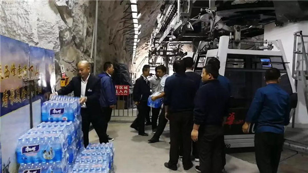 其實,雷科峰平時對大家要求挺嚴的,職工背后議論說雷科峰有一種軍人作風,凌厲、硬氣,大家跟上他干事活多還辛苦。印象最深的是那一次美化南天門“三間房一頁瓦”附近的臺地??油莶黄降呐_地上原來蒙著一堆土,晴天一層灰,雨天滿地泥,冬天雪泥一凍一消,平臺就成了沼澤,不說過來過去行走不便,看起來也讓人不舒服,游客常常一不小心就濺得滿身的泥水,很掃興,雷科峰下決心美化平臺。美化平臺所用的沙子、石子、水泥要到二三里路遠的溝底去背。從山頂?shù)綔系?,一路上全是立坡陡崖,雷科峰領著十幾名職工利用六天的工余時間,硬是把近二十噸的沙石背了上來。背料過程中,有的職工肩膀磨破了,有的雙腿像篩糠一樣抖個不停,許多職工中途不敢蹴下來休息,怕一蹴下就再也站不起來了,歇息時把沙袋子擱在路邊的石坎上,人站著緩口氣……一個個汗流浹背,氣喘吁吁。