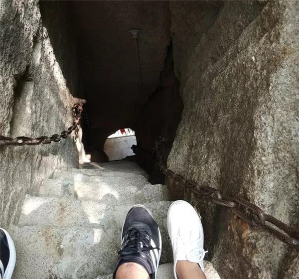 古書記載:在華山大上方有一天然石洞,形似豎井,壁如刀削,僅容一人上下。洞邊有一木梯,石壁上刻有“洞在高山”四個(gè)大字。出洞四望,豁然開朗,峰巒疊翠,林木蒼郁,奇花競秀,流泉淙淙,飛鳥時(shí)鳴,給人一種“無限風(fēng)光在險(xiǎn)峰”之感。因?yàn)榇笊戏降缆菲D險(xiǎn),不是游客必經(jīng)之地,但古書記載的景點(diǎn)就在那里。