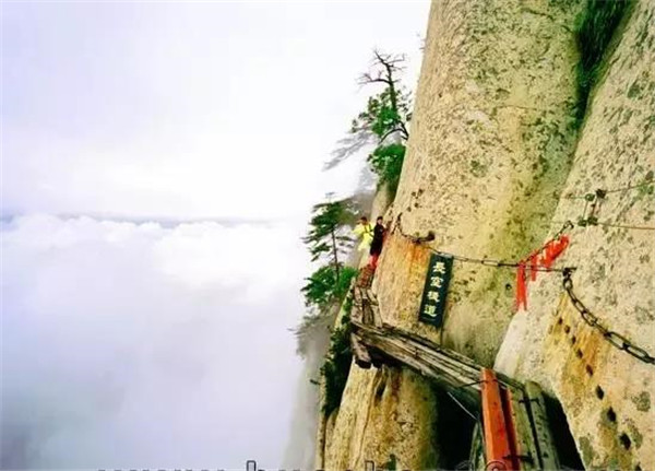 在華山,有一個(gè)全世界五大驚險(xiǎn)旅游景點(diǎn)之一的地方,叫長(zhǎng)空棧道。