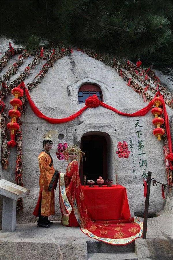 天下第一洞房——相傳秦穆公的女兒弄玉與吹簫人蕭史相愛(ài)后,乘龍跨鳳,騰空來(lái)至華山,鑿洞成婚并得道成仙,“洞房”一詞也是源于此。