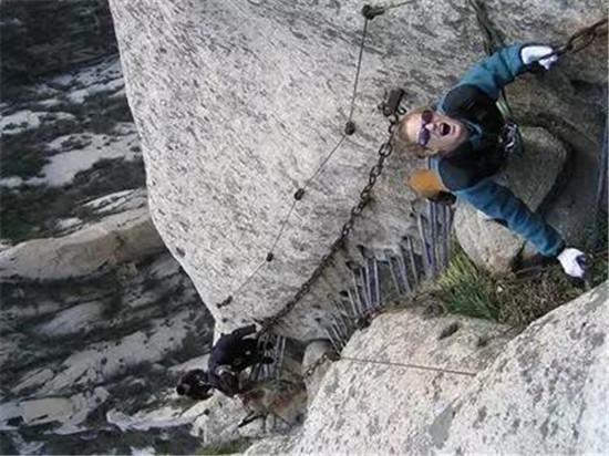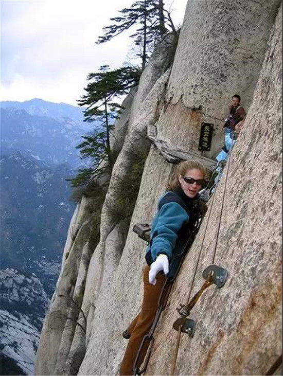 位于陜西省西安市以東120公里的華山是中華五岳之一,也是中國最受歡迎的旅游勝地。它以美麗的自然景色和古老的道教寺院而聞名,但華山最著名的還是那直上山巔的驚險山路。華山號稱“奇險天下第一山”,它那難以置信的驚險道路使得華山足以自豪地配得上這個榮譽。如果你計劃挑戰(zhàn)它,你應(yīng)當(dāng)記住,華山更適合于徒步攀爬,這樣你就不需要特殊的裝備,只是你、大山或者再加一雙手套而已。