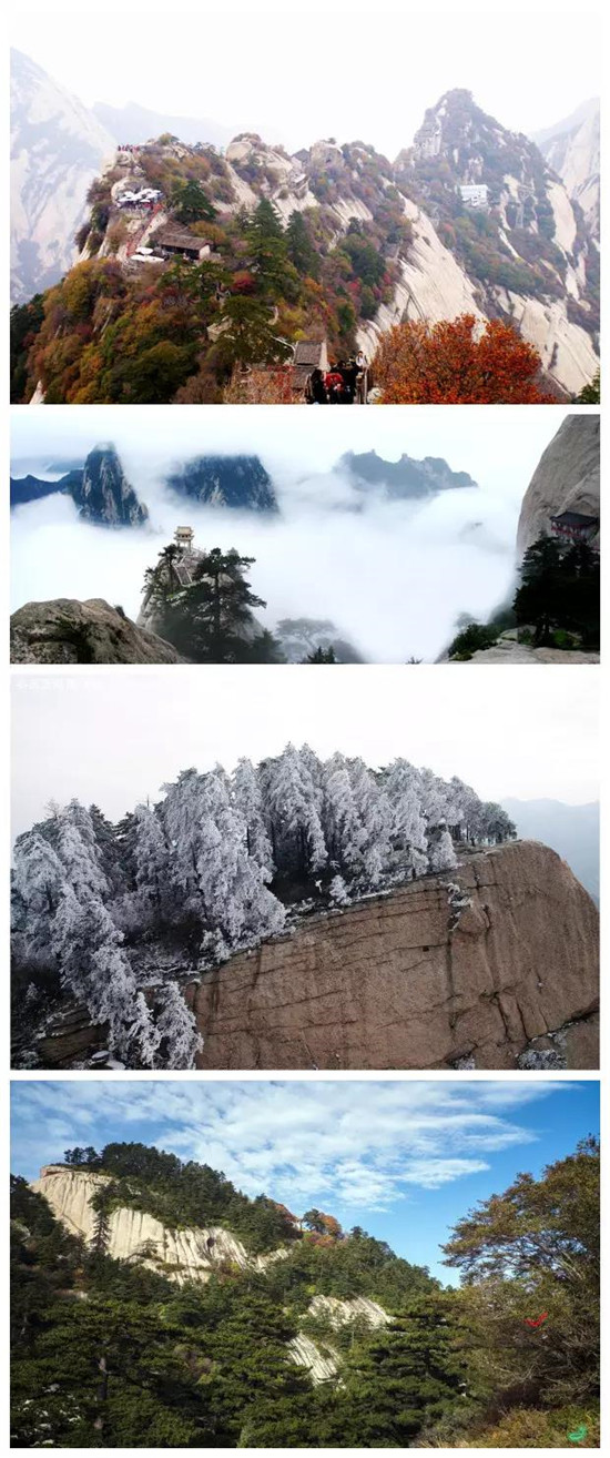 春之翠綠,勃勃生機(jī)。夏之云海,如夢(mèng)如幻。秋之絢爛,滿山紅葉。冬之潔白,銀裝素裹。 【四季華山】