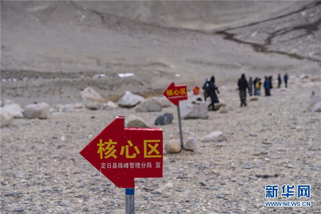 記者近日在絨布寺區(qū)域看到,珠峰保護(hù)區(qū)管理局在寺廟前方設(shè)立了禁止進(jìn)入核心區(qū)的告示牌,標(biāo)明核心區(qū)方向的紅色箭頭警示牌成排排列,告知游客不得繼續(xù)前行。日喀則邊境管理支隊(duì)珠峰邊境派出所也安排干警在核心區(qū)邊界巡邏,并提醒游客文明旅游,不得丟棄垃圾。